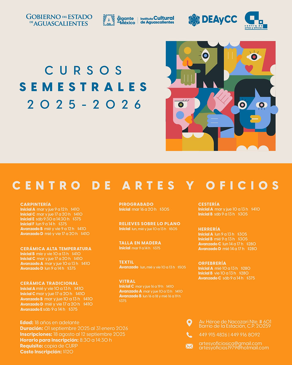 Inscríbete a los cursos que el Instituto Cultural de Aguascalientes (ICA) ofrece en sus distintos centros y casas de la cultura municipales